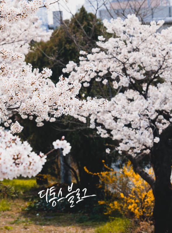 그냥 벚꽃만 찍기에는 너무 어려워서 개나리를 함께 담아봤네요.